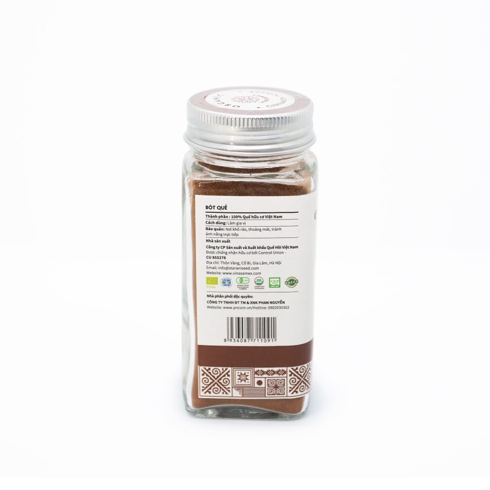 Bột quế hữu cơ Vinasamex lọ trụ 40g Hướng dẫn sử dụng : - Dùng quế để đun nước uống hoặc dùng pha cùng trà, cà phê - Quế có thể dùng làm gia vị chế biến các món ăn, làm bánh và các món ăn nấu, hầm - Quế dùng để trang trí nhà cửa, decor, làm đẹp - Pha quế làm nước súc miệng giúp cho hơi thở có mùi thơm dễ chịu Quy cách: Đóng trong hũ thủy tinh 50gr Khối lượng tịnh: 40gr Hạn sử dụng : 24 tháng kể từ ngày sản xuất in trên bao bì Xuất xứ : Việt Nam Các chứng nhận hữu cơ USDA, EU, Korea, Japan Thành phần: 100% bột quế hữu cơ,sạch không lẫn tạp chất Hướng dẫn bảo quản : - Bảo quản ở nơi thoáng mát, tránh ánh nắng trực tiếp - Đóng kín lọ lại sau khi sử dụng Sản phẩm của VINASAMEX: - Được trồng và chế biến đúng tiêu chuẩn Organic, FairForlife, UEBT. - Quy trình sản xuất khép kín và được giám sát chất lượng nghiêm ngặt, hồ sơ truy xuất minh bạch, rõ ràng. ______________________________________ CÔNG TY QUẾ HỒI VIỆT NAM VINASAMEX Địa chỉ: Thôn Vàng, Cổ Bi, Gia Lâm, Hà Nội #botquehuuco #quehuuco #vinasamex #que #giavihuuco #organic #nguyenlieunauan #giavi #giavihuuco #bep #lambanh #andam #mevabe #hangxuatkhau