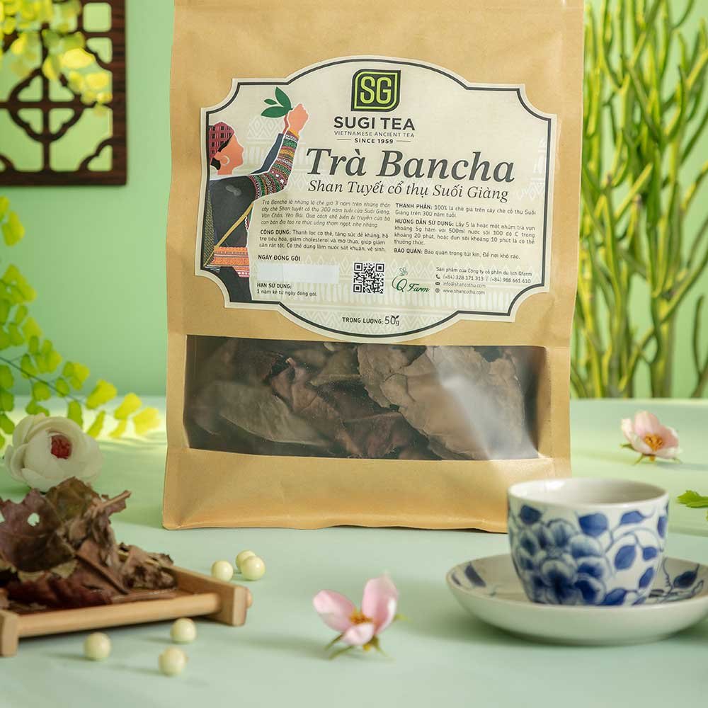 Trà Bancha cổ thụ 50g  SuGi Tea - Lá trà cổ thụ Suối Giàng ---------------------------------------- Trà Bancha là những lá chè già 3 năm trên những thân cây chè Shan Tuyết cổ thụ 300 năm tuổi của Suối Giàng, Văn Chấn, Yên Bái. Qua cách chế biến bí truyền của bà con bản địa tạo ra thức uống thơm ngọt, nhẹ nhàng. Thành phần: - 100% lá chè già trên cây chè cổ thụ Suối Giàng trên 300 năm tuổi. Cách pha: - Lấy 5 lá hoặc một nhúm trà vụn khoảng 5g hãm với 500 ml nước sôi 100 độ C trong khoảng 20 phút, hoặc đun sôi khoảng 10 phút là có thể thưởng thức. Bảo quản: - Bảo quản trong túi kín, để nơi khô ráo. -------------------------------------------- #Trà_Bancha_cổ_thụ_50g, #trabancha, #latrabancha, #latrabantracothu, #trashantuyetcothu, #tracothu, #Sugitea,