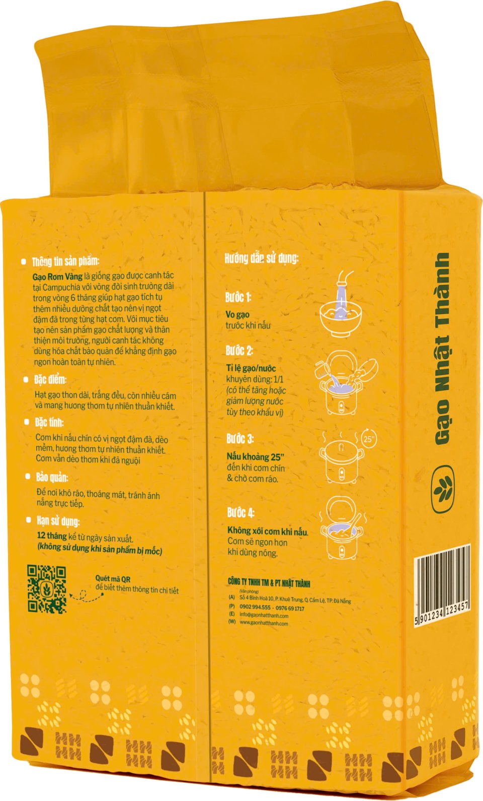 - Vùng trồng: sản xuất từ giống gạo Phkha Romdoul của xứ sở Chùa Vàng Campuchia. - Thời gian thu hoạch: 1 vụ/ năm (lúa mùa 6 tháng) - Nhận diện: Hạt gạo thon dài, trắng đều,chắc và bóng. Cơm ngọt đạm đà, mềm dẻo và xốp cơm, có mùi thơm lúa non tự nhiên.Vẫn giữ được trọn vẹn vị ngọt và dẻo khi cơm nguội, đặc biệt cơm càng nhai lại càng có vị ngọt thanh - Hàm lượng dinh dưỡng: có chứa nhiều chất xơ, các vitamin như: B1, B2, B3, B5, B6, B9, khoáng vi lượng gồm: canxi, sắt, kẽm, magie, kali, photpho, mangan. - Chất lượng: Được canh tác trong môi trường sạch, không dùng chất bảo quản, thuốc chống sâu bọ. - Đạt tiêu chuẩn: HACCP và ISO22000 - Giải thưởng: Gạo Phka Rumdoul đã 5 lần đạt giải Gạo ngon nhất thế giới vào các năm 2012, 2013, 2014, 2018, 2022.