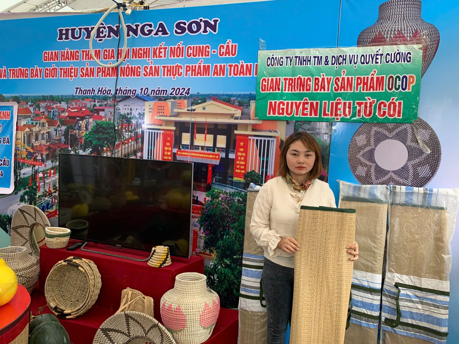 - Mành cói là sản phẩm 100% sử dụng nguyên liệu tự nhiên từ cói nguyên cây gần gũi với thiên nhiên, thân thiện với môi trường, với nhiều công dụng khác nhau nên sản phẩm được nhiều khách hàng trong và ngoài nước ưa chuộng. - Sản phẩm được dệt theo quy trình sản xuất thủ công : Chọn nguyên liệu cói nguyên cây kết hợp sợi chỉ dệt nilong rồi đem đi xử lý nguyên liệu loại bỏ phần không cần thiết đem đi ủ phân vi sinh rồi tiến hành dệt thủ công trên giàn chỉ theo kích thước khách hàng yêu cầu. Sau khi ra thành phẩm tiến hành cắt mép hai biên mành cói, lắt sạch hai mặt mành cói rồi đem phơi nắng hoặc sấy khô . Cuối cùng đóng gói, gắn tem mác. Hoàn thành sản phẩm để tiêu thụ. - Sản phẩm được đóng gói theo quy cách mỗi bao bì PE đựng một sản phẩm trong đó có các gói hút ẩm, bên ngoài gắn tem nhãn theo quy định. Nguyên liệu : Cói nguyên cây ( cói bộ ) , sợi chỉ dệt nilong. Quy cách đóng gói: Mỗi sản phẩm đựng trong 1 bao bì PE có hút ẩm. Hướng dẫn sử dụng : Dùng để lợp mái nhà cho khu du lịch ,đền chùa tâm linh, quấn bảo vệ thân cây khi mùa đông đến . dùng để trải sàn nhà…. Bảo quản :Đặt nơi khô ráo thoáng mát, tránh ẩm mốc.
