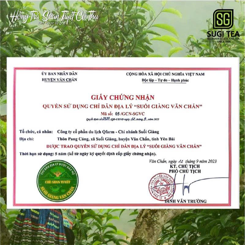 Bạch trà Shan Tuyết cổ thụ 50g - Trà shan tuyết 300 năm tuổi SuGi Tea ---------------------------------------------------- Bạch Trà cao quý là thức trà tinh túy nhất trong dòng Shan Tuyết cổ thụ, được mệnh danh là tặng phẩm của dãy Hoàng Liên Sơn. Biết uống và thưởng thức Bạch Trà là cách giúp bạn nâng tầm khẩu vị, thể hiện được sự sâu sắc, đẳng cấp, tầm hiểu biết của bản thân trong nghệ thuật trà đạo, thưởng thức và tiếp khách. Thành Phần: - 100% búp trà Shan Tuyết cổ thụ Suối Giàng. Cách pha: - Tráng ấm bằng nước sôi già. - Cho 5g trà và 150 ml nước 85 độ C vào ấm. - Hãm trà trong 45 giây, tăng thêm 15 giây trong những lần hãm sau. - Số lần hãm: 7-10 lần. Bảo quản: - Bảo quản nơi khô ráo, thoáng mát, tránh tiếp xúc với môi trường có độ ẩm cao. --------------------------------------------------- #trashantuyetcothu, #bachtrasantuyetcothu, #trashantuyetcothu300namtuoi, #bạch_trà_shan_tuyết_cổ_thụ_300_năm_tuổi, #bạch_trà, #bachtra, #SuGiTea, #SuGi_Tea, #Trà_SuGi_Tea, #Bạch_Trà_SuGi_Tea