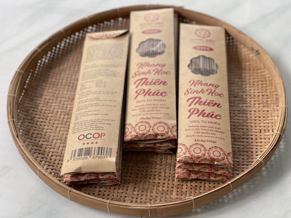 Nhang sạch Thiên Phúc ra đời từ năm 2016 khi giải pháp “Nghiên cứu ứng dụng lá cây quao nước trong sản xuất nhang xua muỗi” do cô Ngô Song Đào - giáo viên Sinh học Trường THCS Phước Hiệp (xã Phước Hiệp, huyện Mỏ Cày Nam) hướng dẫn đạt giải ba cấp tỉnh cuộc thi Khoa học kỹ thuật do Sở Giáo dục và Đào tạo tổ chức với mong muốn mang nghiên cứu ứng dụng vào thực tế. Năm 2017 sản phẩm của Nhang Sạch Thiên Phúc tiếp tục đạt giải khuyến khích vòng chung kết cuộc thi Dự án khởi nghiệp - nông nghiệp cấp quốc gia lần 3 - 2017 do Trung tâm Nghiên cứu kinh doanh và hỗ trợ doanh nghiệp (BSA) tổ chức Với mong muốn mang lại giá trị cho cộng đồng và xã hội, nhang sạch Thiên Phúc đã không ngừng nỗ lực nghiên cứu và đầu tư công nghệ sản xuất nhằm từng bước hoàn thiện công thức nhằm tạo ra sản phẩm chất lượng, sạch và thân thiện với môi trường. Đến nay, Công ty TNHH sản xuất thương mại Sản phẩm sạch Thiên Phúc được Sở Khoa học và Công nghệ cấp giấy chứng nhận “Doanh nghiệp khoa học và công nghệ” và được Bộ Nông Nghiệp đánh giá đạt 3 sao. Năm 2019 sản phẩm nhang sinh học của Công ty TNHH sản xuất thương mại Sản phẩm sạch Thiên Phúc đã được Cục Sở hữu trí tuệ, Bộ Khoa học và Công nghệ cấp bằng sáng chế độc quyền. Hiện nay, công ty đã có hệ thống mạng lưới 70 đại lý ở các tỉnh thuộc khu vực đồng bằng sông Cửu Long cũng như đã có mặt trong hệ thống siêu thị Coop-mart. Công ty đang có kế hoạch nâng cấp, mở rộng quy mô sản xuất cũng như kênh phân phối nhằm giới thiệu sản phẩm nhang sạch và an toàn đến các tỉnh miền Đông Nam Bộ, cũng như miền Trung và miền Bắc